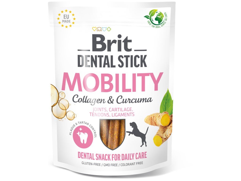 Brit Dental Stick - dentálna maškrta pre psov "Pohyblivosť" s Kolagénom a Kurkumou - dentálna maškrta pre každodennú starostlivosť o zuby.