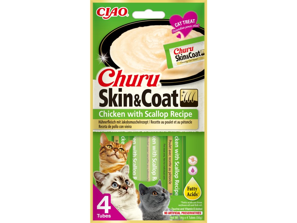 Churu cat masové pyré pre krásnu srsť a kožu - kura, hrebenatky