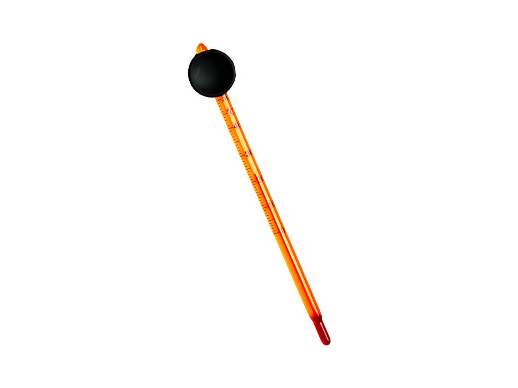 Akvarijný teplomer v sklenenom prevedení. Tento teplomer funguje olejovej báze a používa sa pre sladkovodné aj morské akvária. Najlepšie meranie teplomer dosahuje, keď sa umiestni úplne ponorený pod vodnú hladinu a ideálne tak, aby nebol blízko akvarijného kúrenia.