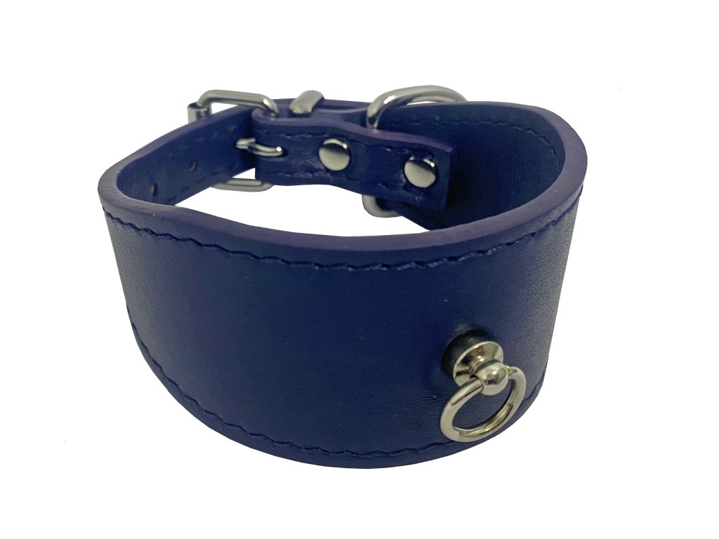 Obojok z talianskej vrchovej vyčinenej hovädzej kože. Špeciálne navrhnutý pre chrty. Kovová spona. Krúžok na psiu známku. Prešívanie po celej dĺžke obojku. Podšívka z vrchovej hovädzej kože do farby lícovej strany. Vyrobené v Českej republike. K dispozícii je päť veľkostí. Rozmer: S 40mm x 25-30cm. Farba: modrá.Dodatočné parametre