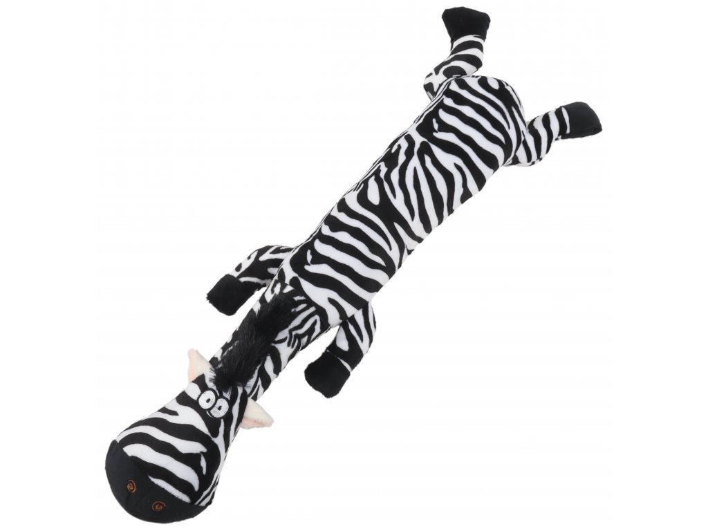 Huhubamboo plyšová hračka pre psov v podobe zebry s dlhým telom. Dlhé telo umožní príjemnejší úchop v papuli, takže vášmu štvornohému priateľovi sa neustále bude chcieť sa o hračku preťahovať a hrať sa s ňou. Vnútri hračky sa nachádza pískatko pre väčšie zaujatie vášho maznáčika. Rozmery: 58 cm x 22 cm x 9 cm. Materiál: 100% polyester. Upozornenie: Dbajte na to, aby vaše zviera nezjedlo žiadnu časť hračky, mohlo by to mať nepríjemné následky. Nie je hračka pre deti. Určené iba pre psov.