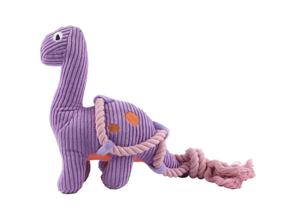 Huhubamboo hračka menčestrový Dinosaurus s lanom.Huhubamboo menčestrová hračka v podobe roztomilého dinosaura. Mäkká hračka pre hru alebo na spríjemnenie dlhých chvíľu vášho štvornohého priateľa. Rozmery: 32 cm x 9,5 cm x 26,5 cm. >