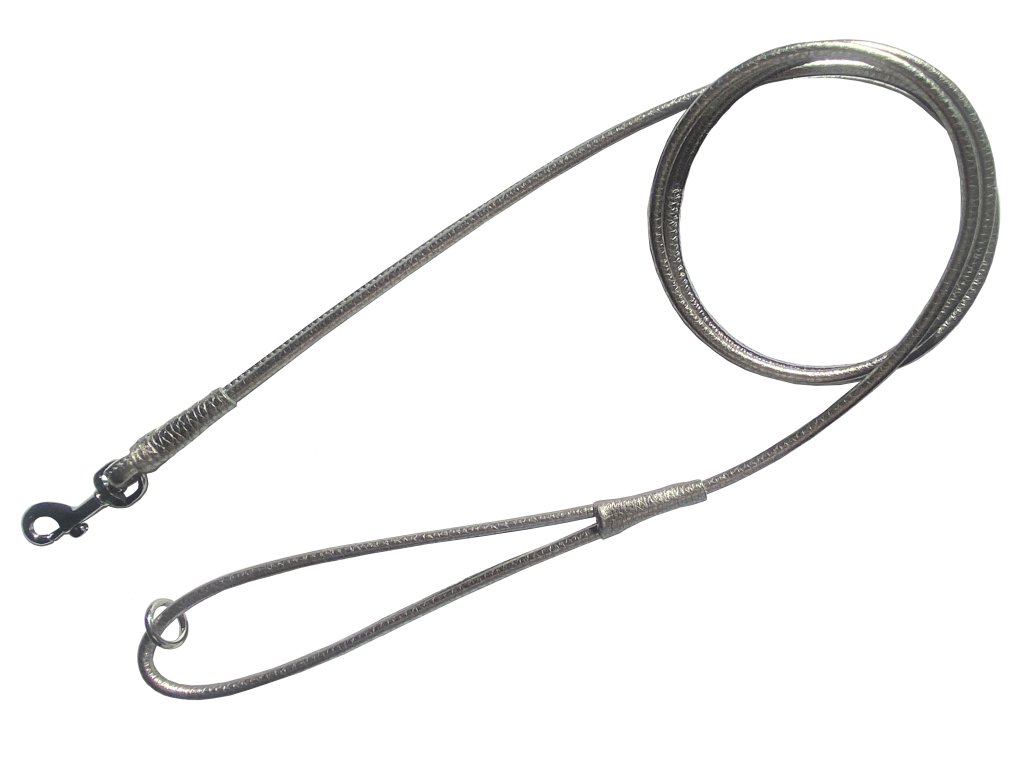 Vodítko z talianska hovädzej kože metalickým efektom. Vodítko je okrúhle a po celej dĺžke prečité. v Uchu je umiestnený krúrok na pripnutie taštičky na vrecká. Celková dĺžka 140 cm s priemerom 5 mm. Háková kovová karabína na pripínanie k obojku. Vyrobené v Českej republike. Farba: titánová.Dodatočné parametre