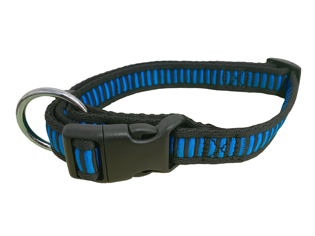 Obojky sú vyrobené z veľmi mäkkého a príjemného popruhu s vtkaným vzorom rebríka. Zapínanie na plastovú pracku, ľahko nastaviteľný obvod. Obojok je vhodný pre malé, stredné a veľké plemená. Pred zapnutím prevlečte pracku krúžkom. Pokiaľ ju neprezlečiete, dochádza tak ku krúteniu obojku. Rozmery: 2 cm x 38-60 cm. Farba: modrá.Dodatočné parametre