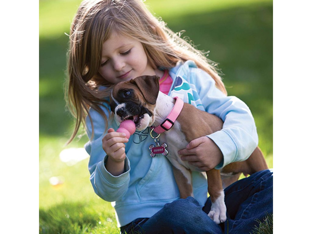 KONG pasta v spreji pre šteňatá od 8 týždňov a pre dospelých psov, vyrobené z kuracej pečene a mäsa s vitamínmi, kalciom a biotínom. Pasta môže byť použitá ako náplň do hračiek KONG granát alebo ako odmena či maškrta. Pasta sa aplikuje do dutiny hračky alebo do vonkajších drážok. Pes sa snaží pastu vylizovať, čo ho zabaví na dlhší čas. Odporúčané množstvo pasty na jednu aplikáciu je 2 – 3 g. Určené pre šteňatá a dospelých psov. Použitie: Hračku KONG držte v jednej ruke, prstom druhej ruky stlačte trysku aplikátora, pri aplikácii držte nádobu aplikátorom dole pod uhlom 45 a ústie aplikátora nasmerujte dovnútra hračky KONG alebo do rýh dentálnych hračiek Kong. Zloženie: srvátka, sójový olej, voda, mlieko, škrobová múčka, maltóza, kuracie mäso a kuracia pečeň, kyselina mliečna, soľ, syrová kultúra. Analytické zložky: hrubý proteín 3%, hrubý tuk 23%, hrubá vláknina 1%, hrubý popol 0,5%, vlhkosť 53%. Výživné doplnkové látky/kg: enzýmy, sulfát zinku, selén, kalcium, sulfát železa, oxid mangánatý, sulfát medi, B – biotín (hlavné zložky), vitamíny: vitamín E, B12, A, C, B6, B1, vitamín B2 a zdroj vitamínu D3.