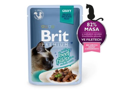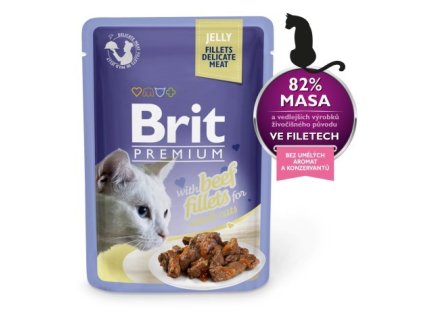 Lahodné vrecko s trhaným hovädzím mäsom Cat Delicate Fillets in Jelly with Beef, to je kompletné krmivo pre dospelé mačky.