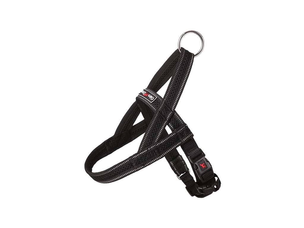 Postroj Gimborn Mesh Y je pohodlný a veľmi praktický. Disponuje reflexnými prvkami, vďaka ktorým bude váš pes dobre vidieť aj za tmy. Má praktické uško, za ktoré je možné psa pridržať. Vodítko sa zapína klasicky zvrchu, očko na uchytenie je dobre prístupné. Postroj sa jednoducho nasadzuje cez hlavu a zapína sa pod hrudníkom, čím odpadá mnohokrát nepríjemná manipulácia so psom. Postroj má šírku popruhu 2,0 cm a je v čiernej farbe.