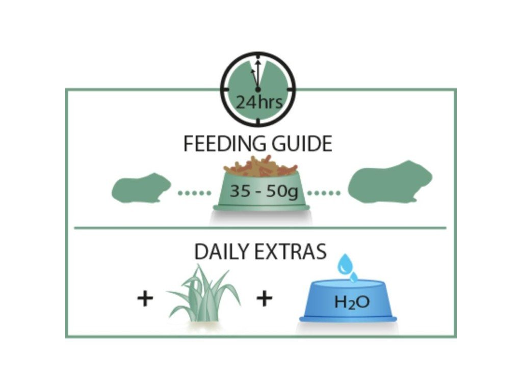 Kŕmny návod: V závislosti od veľkosti, plemena a veku morčaťa odporúčame podávať denne 35 až 50 g.